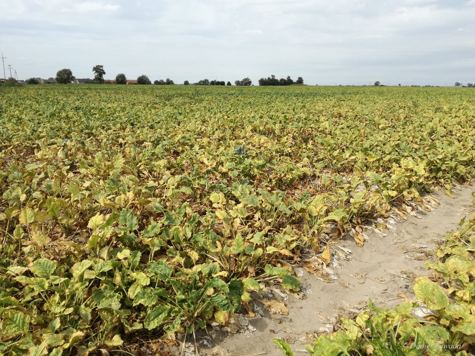 Temperatura >24℃ i wilgotność ≤40% – maj, czerwiec, lipiec, sierpień – bardzo częsty monitoring plantacji, brzegi pól oraz nietypowe zażółcenia.